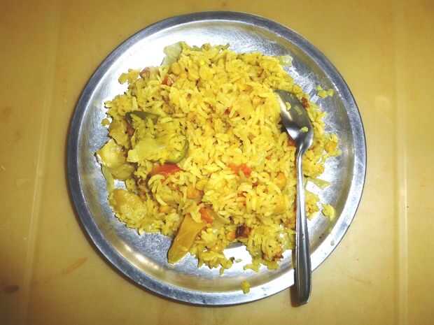 Una vez que cae la presión en la olla, puede abrir la tapa. Su comida de Camping está listo.