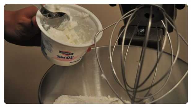 Mezcla la mezcla de torta, yogur griego, claras de huevo y agua con un tenedor, un mezclador de mano o una batidora eléctrica. Incumbe a usted!