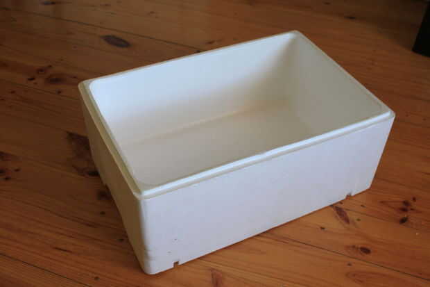 recibí mi caja de la espuma de mi trabajo pero son muy fáciles de venir por pregunte el supermercado ya que generalmente los tienen por la parte trasera. La primera cosa a hacer es pintar la caja de la espuma se puede utilizar cualquier pintura para esto, incluso he utilizado pintura de casa y funciona bien. Esto ayudará a mantener la forma a la caja y no romper tan rápido. Usted puede utilizar cualquier color que desee, pero yo sugeriría colores más ligeros como el sol se reflejará apagado y puede ayudar a mantener las raíces y plantas fresco en verano. Después de un par de capas que debe sentir que ha hecho el cuadro mucho más fuerte.