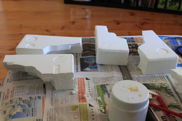 Su una buena idea para pintar estos así sea antes de adjuntarlos a la caja o después, no importa. Entonces utiliza pegamento PVA para unir las piernas a la parte inferior de la caja. Después de unos minutos Voltee la caja (por lo que es la manera correcta para arriba) y poner algo heavy(ie. books) interior para pesar abajo. Dejarlo durante la noche para secarse.