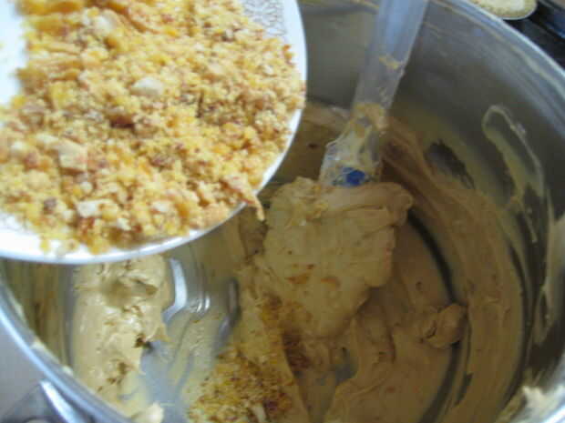 Aplastar algunos de los frágiles en un mortero y maja (o sin embargo quiero) entonces mezcla con la masa restante.
