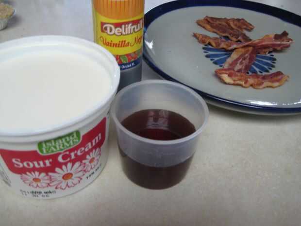 Mezclar el jarabe de arce y la vainilla con la crema agria, luego Espolvoree el azúcar en la parte superior.