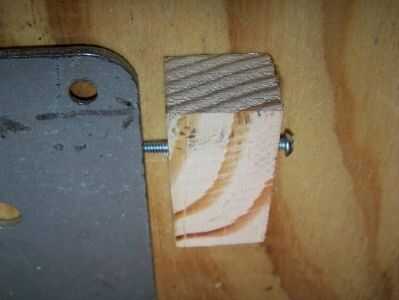 Resolví ese problema con dos 3/4 x 3/4 de pulgada bloques montados debajo de la mesa a un lado de la placa base de la sierra. Los bloques son cerca de 2 pulgadas de largo y son pegados o atornillados en la parte inferior de la tabla. Una bien ajustada tornillo pasa a través de un agujero en cada bloque y la punta descanse sobre el borde de la base de la sierra en la parte delantera y la parte posterior de la base de la sierra. (Ver las dos fotos adicionales con este paso.) Uno de estos tornillos girando en o parte de un giro alinea la sierra con micrómetro de precisión por lo que la hoja es exactamente paralela a las ranuras del calibrador de inglete. Usted sabe que la sierra está alineada cuando la parte posterior de la hoja no levantar, astillas, aserrín y mientras se rasga un tablero. Cuando necesité mi sierra para otro trabajo, podría quitar los pernos de montaje y tomar la sierra conmigo en cuestión de segundos. Más tarde pude conectar libremente con sus pernos de montaje, deslice la base contra las puntas de los tornillos y termine de apretar los pernos de montaje. La sierra estaba perfectamente alineada otra vez. (Demostraron esta característica básica en otra aplicación. Ver mi Instructable titulado Radial Sierra mesa de alineación--una manera más fácil).