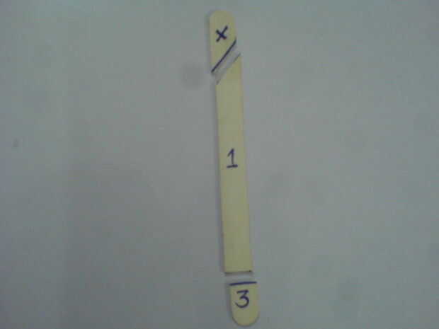 Como se muestra en las fotos, cortar aprox. 1,5 cm desde el extremo de sólo un palo de polo. (pieza n º 3 en la foto). No tirarla. Corte diagonalmente en el otro extremo del palo de Polo como se muestra en la foto. Deseche la parte con la "X" dibujada en él.