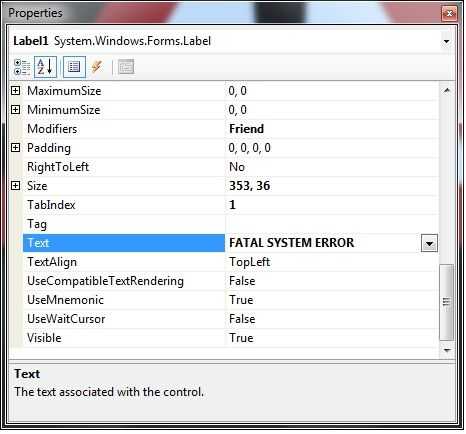 2) de manera similar para la segunda etiqueta fijamos el tamaño de fuente 14 y escribimos en el texto como "225:0XE1 código de ERROR de sistema" (esto también en mayúsculas). (Observe que esto simplemente no es un código de error que me pero es el código de error real del sistema para la detección de virus). La ponemos debajo de la primera etiqueta.