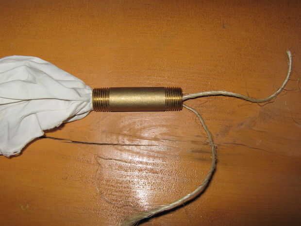 ahora dan los 2 extremos un buen tirón y elaborar el trapo en el tubo firmemente. dejar una pequeña cantidad de espacio posterior al final de la tubería para enrollar la cadena abajo en el tubo antes de colocar el casquillo de la pipa encendido si su usando uno, esto será útil más adelante si tu viene aloose.