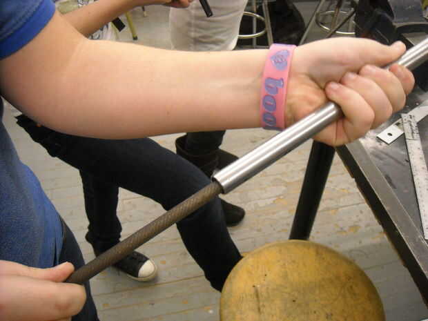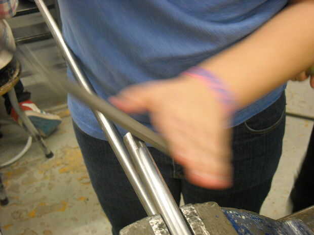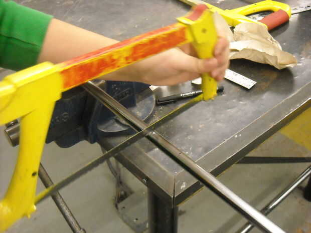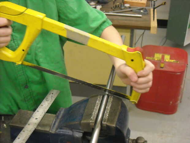 Tire de la sierra. Los estudiantes tienden a rellenar la sierra en el acero. Dígale que levante un poco y Tómatelo con calma. Algunos niños incluso meter tan duro que cuando se rompe a través sin querer perforar el vicio.