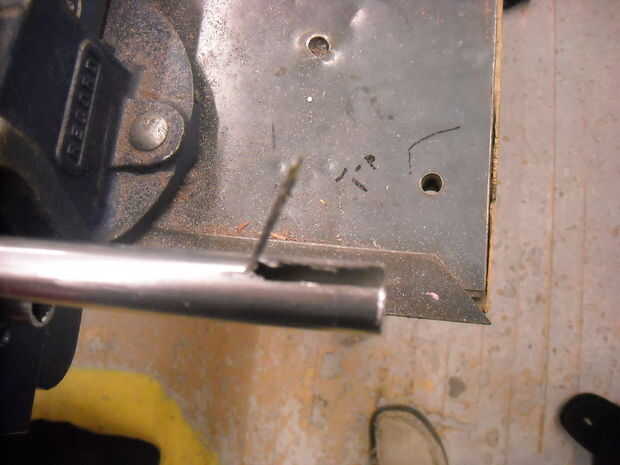 Una vez que los niños llegan a cortar a la línea de corta 8mm que se puede hablar de acero de endurecimiento por deformación. Un buen ejemplo es cómo los niños pueden romper una percha doblándola hacia atrás y hacia adelante. Ahora pulse la ficha pequeña que has cortado y hacia atrás hasta que se despeguen. Utilice una lima para suavizar la línea de rotura hasta unos 45 grados archivo dentro y por fuera para eliminar las rebabas.