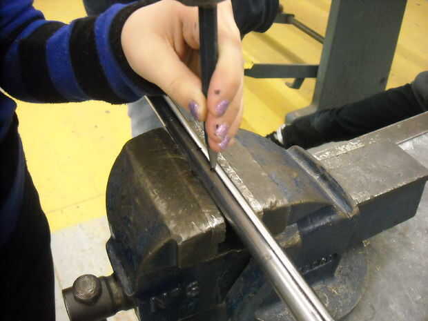 Soporte la tubería en un vicio y punzón todos los agujeros. Llego los chicos a golpear de manera más que lo haría normalmente... tubo redondo puede ser complicado.