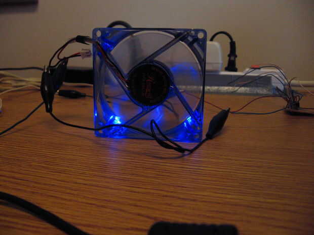 Después de doble comprobación de las conexiones para asegurarse de que el puerto LPT está conectado sólo a la base del transistor y tierra, puede enchufar el transformador o encienda la fuente de alimentación al circuito. El ventilador puede o puede no empezar spinning porque algunos ordenadores o sistemas operativos puede dejar las clavijas de datos de después del arranque. El ventilador debe dejar si quita el cable blanco de la señal desde el puerto LPT.