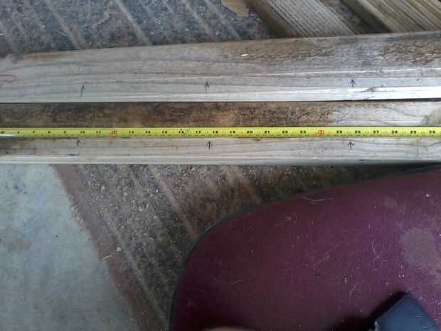 Marqué dos piezas verticales con las posiciones de las partes horizontales. Luego fija ambos extremos con un clavo y comprobado para el cuadrado midiendo las diagonales. Una vez cuadrados clavado de ambos lados
