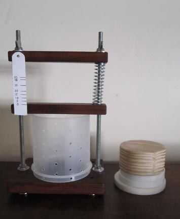 Hay una cierta cantidad de engranaje que usted necesita para ir al siguiente nivel. Una de las principales piezas de equipo necesario para la fabricación de quesos más duros es una prensa de queso para exprimir la cuajada bajo una presión específica por un determinado tiempo. Encontré queso Prensas para venta en línea pero eran caros ($70-$275). Decidí que lo mío era el camino a seguir. Quería algo que sería capaz de manejar hasta dos libras de cuajada y generar hasta 50 libras de presión. Tomé mi inspiración de un par de diseños similares de prensa que encontré en línea y agregar mis propias ideas. Después de la experimentación un poco terminé con una prensa que era fácil de usar y barato construir herramientas básicas. Esperar a gastar entre $10 a $25 dependiendo de cuántas cosas ya tienes en casa.