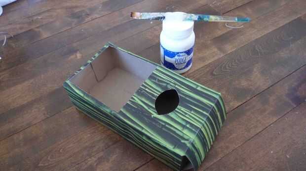 Ahora puede poner Podge (pegamento tipo de blanco que protege la superficie de un poco, puede encontrarse en todas las tiendas de manualidades) o se puede pintar la caja si se desea un color diferente.  PODGE o pintura interior y exterior. La idea es proteger el cartón de la humedad y así que puede durar más tiempo.