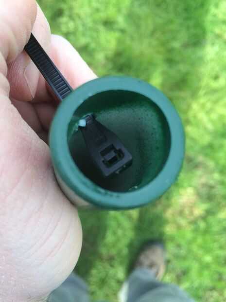 Inserte el extremo de la amarra por el agujero desde el interior de la tubería.