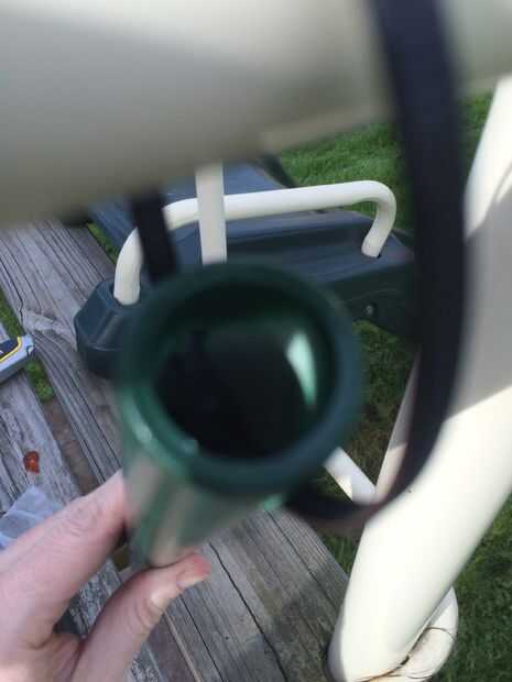 Entonces el cordón alrededor de la barandilla del lazo y colócala en el otro orificio de la parte exterior de la tubería. Entonces solo lo alimentan a través de la hebilla hasta que esté ajustado.