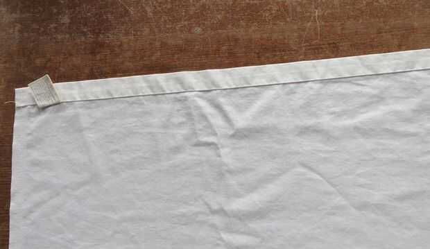a) Coloque la hoja, del lado equivocado, así que el extremo inferior es plano y el dobladillo quede hacia arriba.