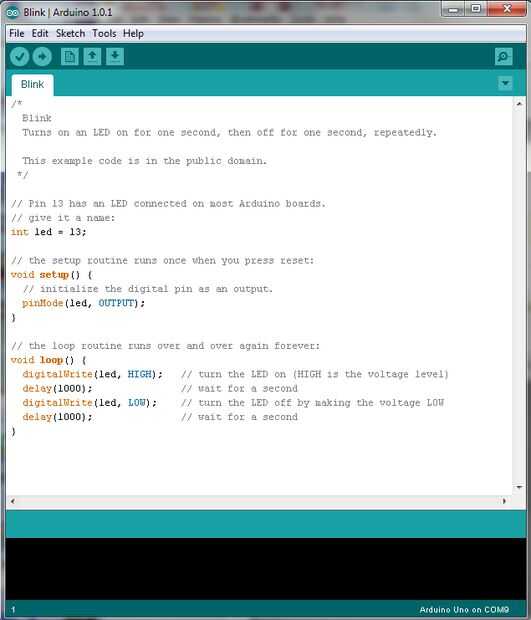 El programa de C equivalente (Arduino Sketch) a continuación se muestra así.
