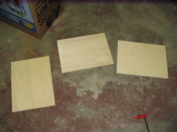 A continuación, en la otra mitad de la hoja de madera contrachapada, cortar sus 3 16" tablas para el panel frontal y control