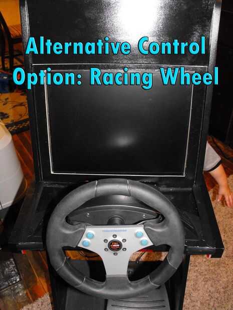 Ya que estamos hablando de paneles de control, pensé que ahora sería un buen momento para repasar algunas opciones de control, usted puede considerar para su gabinete. La configuración de control estándar para un arcade casero de 1 jugador es 1 joystick, botones de acción de 6-7, botón de start y un botón de moneda. También puede crear gabinete de carreras mini. En mi segunda versión, hice una carrera gabinete poniendo solo un volante de PC en lugar de los controles. Véase el cuadro 2.