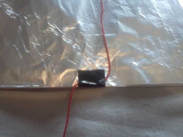 Bastante simple. Hice una espiral cruda con el otro extremo del cable, que cubre más área en la hoja, luego pegado abajo. Cuando grabar el alambre en la parte inferior del cartel, usted puede hacer una pequeña forma de "L", tan cualquier tirón en el cable no directamente tire de él para el cartel.