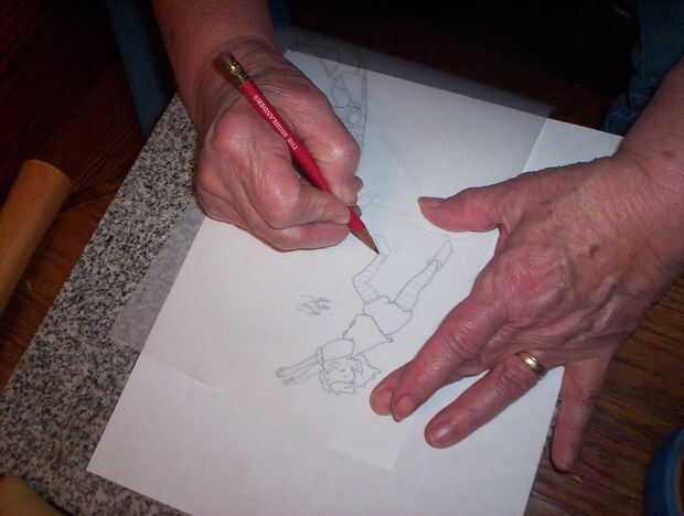 Trace el patrón en el lado opaco de la película de trazo con un lápiz.  Transferir el patrón de la película a tu piel húmeda con un lápiz o el lápiz de trazado.  Puede cinta el patrón hacia abajo para asegurarse de que no se mueva mientras se trazado.  Normalmente reviso antes de sacar el patrón que yo he trazado las líneas del patrón.  Este patrón particular que encontré en un libro de colorear.