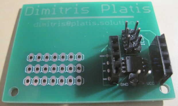 Finalmente, así es cómo la tarjeta después de soldar unas pinzas en ella. Lindo, ¿no?