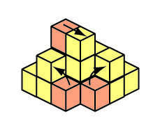Cuadro 13 muestra una situación en un diagrama, una instantánea en el tiempo, donde se están moviendo 3 piedras al mismo tiempo. Dos piedras nivel base y vienen hasta el segundo nivel, mientras que una piedra que fue colocada en el nivel 3 anterior, se ha deslizado a lo largo de en su ubicación final.