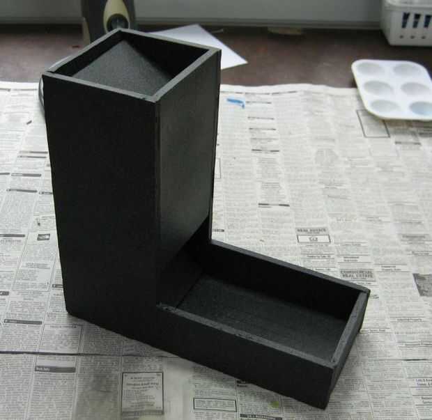 Tuve una repuesto lata de pintura en textura Rustoleum que quería probar. Necesita una capa negra, primero que tuve que prime la torre negra.