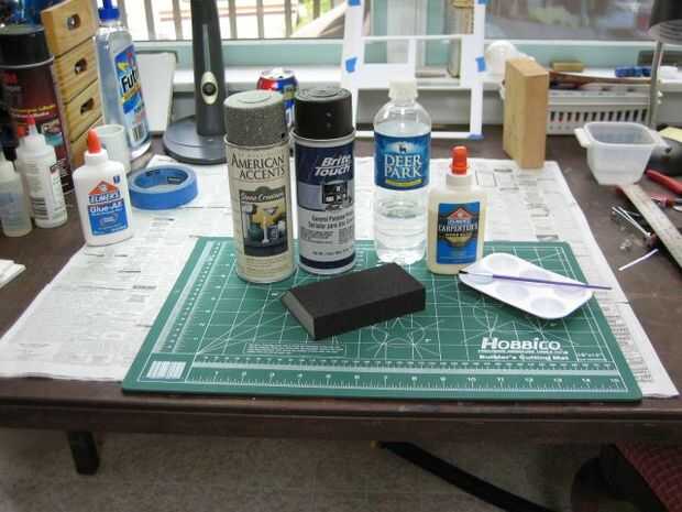 - pincel pequeño hobby y el taza de agua para mojar en. Cepillos baratos son buenos - esto utiliza para esparcir el pegamento uniformemente.