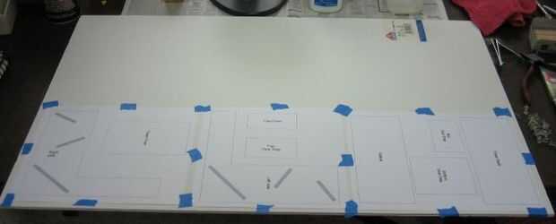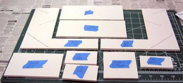 Una vez que ha cortado todas las piezas de cartón pluma en la hoja de cartón pluma y anotó la ubicación de la casilla gris de los pasos dados en cualquier piezas laterales que están haciendo en este momento, coincide con las piezas de cartón pluma y papel plantilla para que usted sepa cuál es cuál.