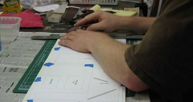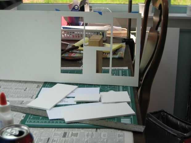 Una vez que ha cortado todas las piezas de foamboard, etiquetado y la ubicación de los pasos dados marcados en las piezas laterales, es hora de empezar a armar este lechón.