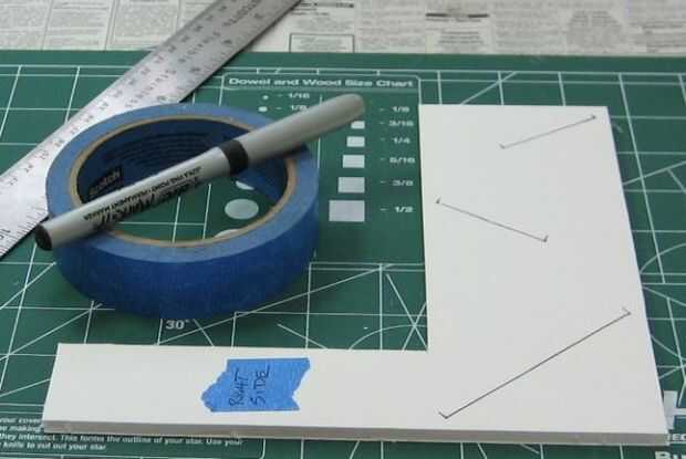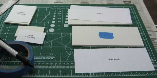 Otra vez, a la izquierda y la derecha piezas - tomar la pluma y escribe en las líneas que marcó para los cuadros de gris. Lo en que escribes está en el interior de la torre y estas marcas no sean visibles. Esto transfiere la información de ubicación de paso de dados sobre el cartón pluma.