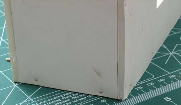 Una vez que todo encaja perfectamente, empezar con el pegado y toothpickin' en la parte inferior. En la pieza del fondo, hacer cuatro palillos de dientes en los lados y dos en la parte delantera y trasera. Los cuatro lados que deba ser fijado.