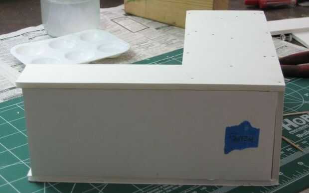Sin clavos todavía, subir la torre derecha y pruebe la colocación de la pieza frontal de la bandeja.