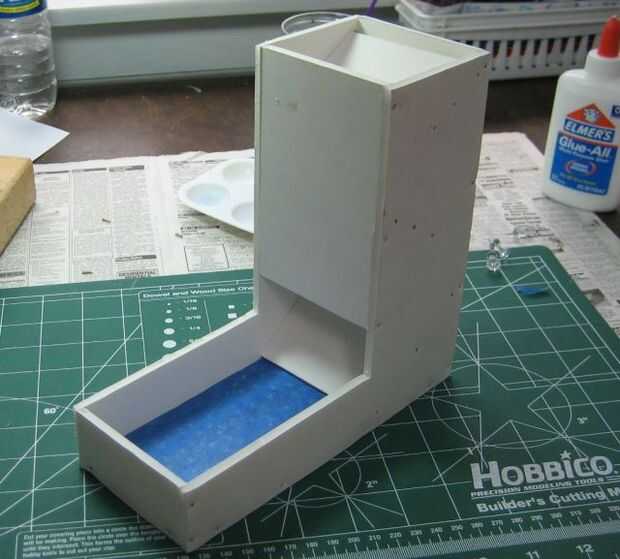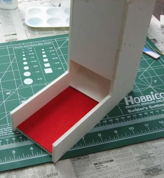 OK, el fieltro se instala y todo lo que queda es la pieza frontal de la bandeja. En este momento usted es un maestro de la acción de marcador/pegamento/palillo. Hacer lo que debe hacerse, fijando los dos lados y la parte delantera de la pieza frontal de la bandeja en la pieza del fondo. Dos agujeros de cada lado debe hacerlo.