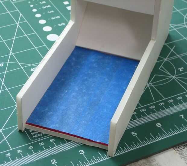 Si vas a pintar la torre luego como yo lo hice, ahora sería un buen momento para enmascarar el sentido, antes de volver a poner en la pieza frontal de la bandeja. Es por ello que el fieltro se cubre con cinta de enmascarar en mis fotos.