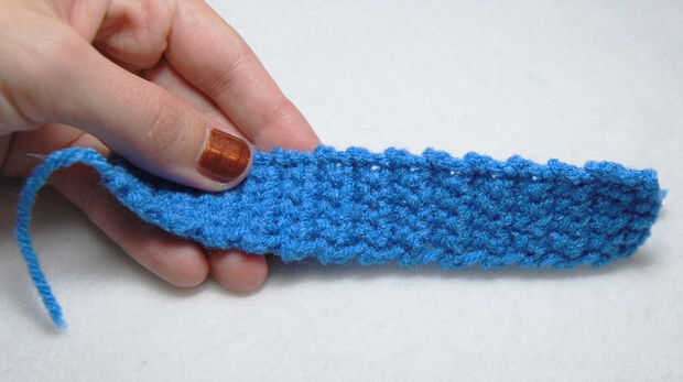 Nota: Si usted está haciendo la pulsera brazalete para alguien bajo tres, dejar una pequeña habitación para deslizar la pulsera sobre la mano del usuario. Por lo general una o dos filas funcionará si está utilizando un hilado acrílico elástico. Ver acabado para personas bajo tres de paso/diapositiva 10 para más detalles.