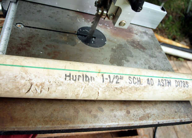 PVC corta bastante fácilmente en la mayoría de las sierras. Pero puede derretir si la cuchilla no está suficientemente afilada. Hace un montón de polvo de PVC que recoge una carga estática y se pega a todo. Es un lío para trabajar con. Es como caspa realmente mal, termina todo le.