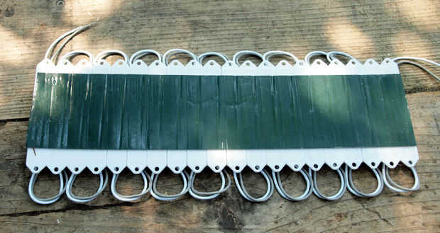 El LED que estoy usando se juntan en una franja que se lleva a cabo junto con cinta de doble palo. Hay 5 LED de a cada unidad y están cubiertos con un plástico para sellarlos para que sean impermeables. Puedo conseguir unidades con 6 LED pero al mejor precio en el momento es de 5. Sumar uno más había llevado casi dobles el costo. Estos particulares están diseñados para uso en luz de señales. Mayores indicaciones en los edificios pueden ser equipados posteriormente con ellos también para que utilizan menos energía y no se efectuarán con el tiempo. Ellos no parpadean cuando hace frío y la humedad no les molesta tanto.