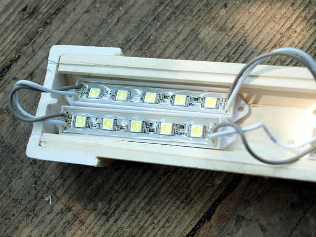 Utilicé la cinta de doble palo en primer lugar, Monte los módulos. Después fueron todos en el lugar y los cables babeaba pegamento en las lengüetas para pegar en el lugar. Los módulos son de PVC para que el pegamento de tubo trabajado perfecto.