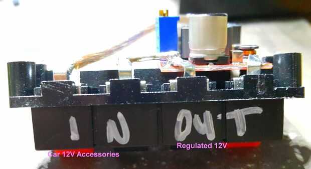 Los tres componentes de la DRU usan 12VDC. El circuito de accesorios de 12V de coche no da una salida estable de la energía para la electrónica sensible. Usé un convertidor DC DC buck a dar un 12.0VDC garantizado para el DRU. Usé un conector rápido de cable de altavoz de repuesto para permitir el uso fácil durante la implantación.