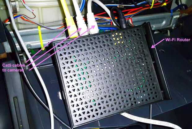 Cable de atado el router en el compartimiento de la guantera, por lo que está protegido y se mantendrá fresco por el aire acondicionado de conductos.