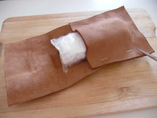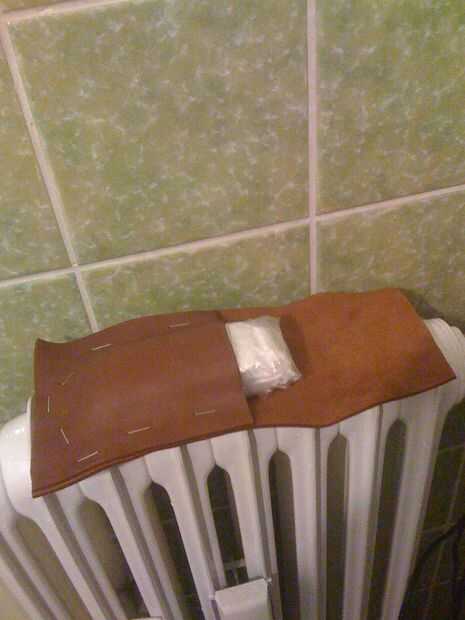 A veces sólo tienes que hacer las cosas a su manera. Si se siente bien, hazlo. Tan había empapado en el cuero, había sellado el cuchillo y bitholer en una bolsa de plástico y había colocado dentro de la piel que luego apreto en forma. Coloca todo en la calefacción en el cuarto de baño y esperó a que se seque para arriba. Ah, y una grapadora para unir todo. Este método de grapadora es bastante primitivo, pero hace el trabajo.