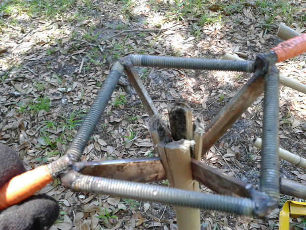 Partir en mitades o cuartos con sólo un machete es posible, pero en mi experiencia no es fácil. Una división escurr generalmente a un lado o al otro, así que después de dar vuelta que una media docena o así que dispara a prender, me hice un bambú partir herramienta de alguna varilla roscada y una vieja espada de katana de calidad de mercado de pulgas he tenido gallinas alrededor de durante mucho tiempo. Cortar 4 piezas con un ángulo en el extremo de cada uno con la espada, luego sueldan en una + forma, soldado con autógena una plaza de varilla roscada en sus esquinas, luego agregó dos manijas en las esquinas. He visto divisores profesionalmente hechos por alrededor de $100 y parecen muy similar a mi herramienta. El bambú se divide muy fácil y bastante uniforme desde cualquier cuarto que trata de salir corriendo se lleva a cabo contra uno a su lado, le impide hacerlo.