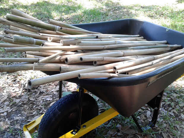 Ahora que tuve un buen splitter y una carretilla llena de ~ 1 metro de largo corte los extremos, me quitó todas las extremidades extras de ellos con un machete pequeño, había ajustado a la Plaza de extremos donde son demasiado violentamente e iba partir en cuartos. Guantes aquí si nada mas como los bordes de los palillos de la fractura será lo suficientemente fuerte extraer la sangre como sus manos bajan por ellos. A veces los extremos habrá comenzado ya partir en cuartos; Asegúrese de ajustar las cuchillas de la cortadora en éstos o la sesión entera es probable convertirse en un desastre. Los nodos pueden ser difíciles de ejecutar, para ayudar a cosas junto con un mazo o golpear la parte inferior de la sesión sobre una superficie dura es útil. Una vez que se dividen todos los atajos, ya estamos listos para tejer!
