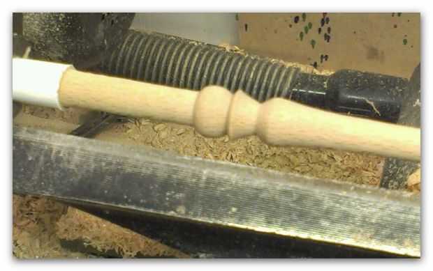 Con el corte de Tennon completé para formar áspero para el resto del tallo. Una vez tuve una forma que me ha gustado, participé en el torno - pero no antes de marcar la madera a la tirada con el número de la mandíbula estaba tocando en ese momento. -Lo hice para que sea más fácil montar la madera más adelante para el acabado.