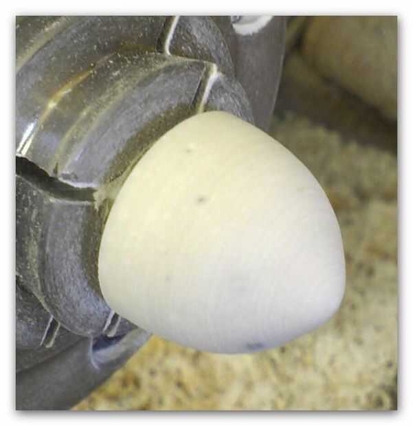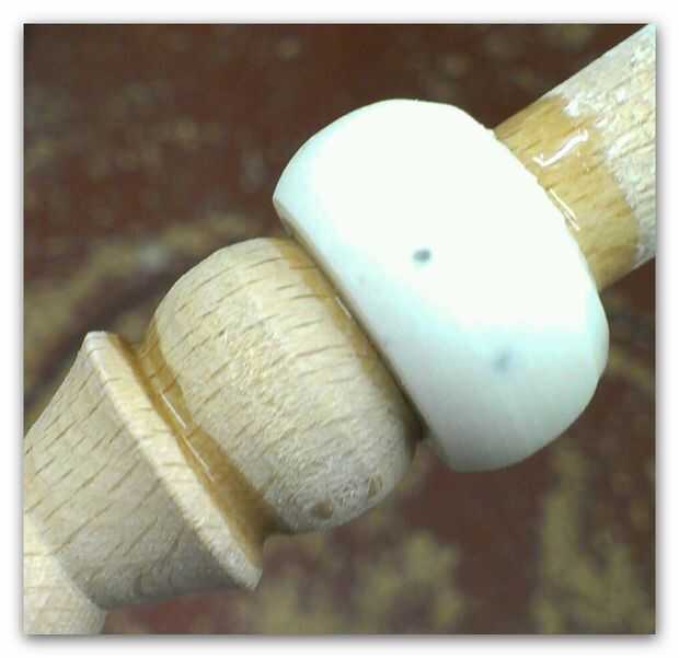 Terminar el extremo de la manija tiene un poco de nervio y una mano firme como su montaje en las mordazas con sólo una muy pequeña tennon para sostener, una vez que tenga una forma agradable que sobre el mismo diámetro que el anillo de velstone, pulido con pluma fina pulir. Lo importante aquí es para intentar conseguir el borde ensambla como Plaza y aguda como sea posible para dar una Unión limpia cuando pegado - la razón de esto es que una vez Unido es el último bit y no habría ninguna otra oportunidad de poner en el torno.