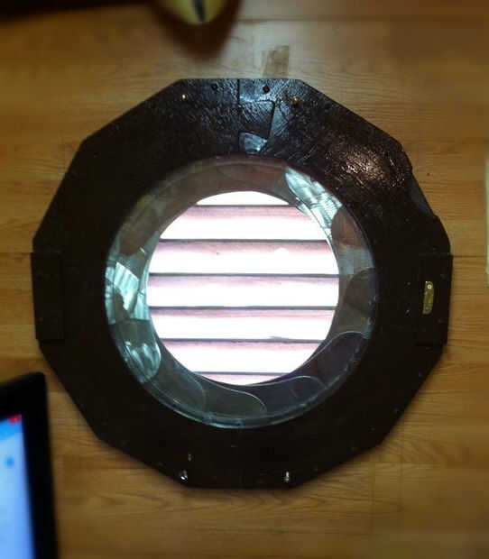 Instalación de la portilla ahora es una simple cuestión de conducir los tornillos en los orificios piloto para fijar las bisagras y la cerradura del marco a la caja. La parte más delicada de la instalación de ojo de buey estaba pelando lejos el plástico protector en el Lexan.