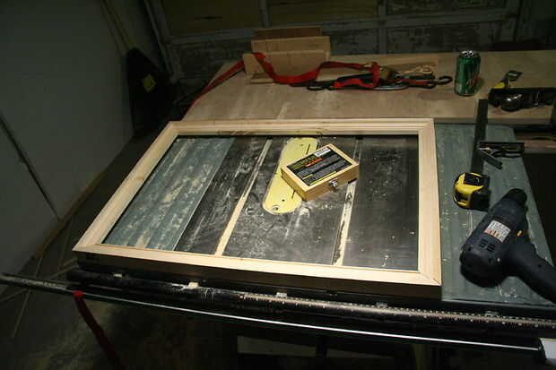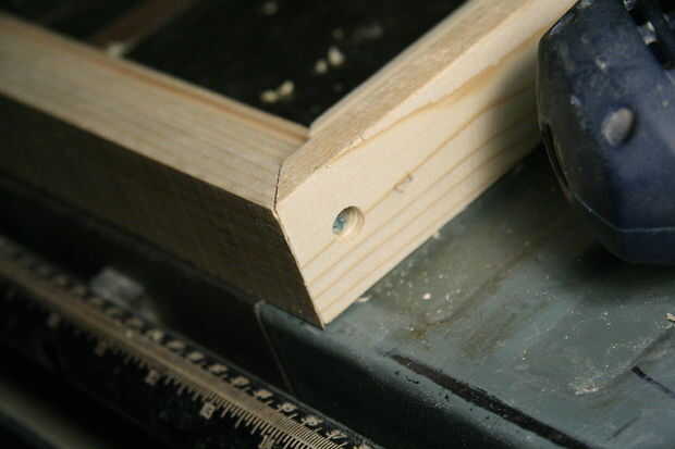 Use tornillos para madera (hilo de rosca grueso, cabeza plana) para unir el marco. Contra ellos están aburridos porque tenía tornillos de cabeza. Si tiene tornillos de cabeza plana, un contador hundido agujeros sería más agradables. Deja las esquinas un poco flojo hasta que el vidrio. El marco no tiene mucha fuerza sí mismo, y tener rígido sólo hará más difícil poner vidrio en él. El vidrio tendrá 2 bordes de la fábrica, que tenga la Plaza de trabajos enteros.