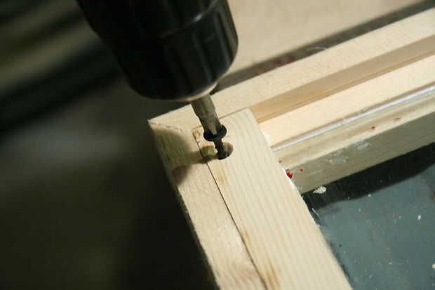 Desecante probablemente debe colocarse entre las láminas de vidrio. Podría añadir un agujero en la parte superior de la hoja para esto y sellar con un tornillo grande o un pasador cónico. Usted puede Comprar desecante en McMaster-Carr. También se puede utilizar aire seco para llenar la ventana si tienes un compresor de aire. Creo que vendrá algo de humedad de la madera, así que puede ser aconsejable para pintar los trozos de madera antes y después del montaje.